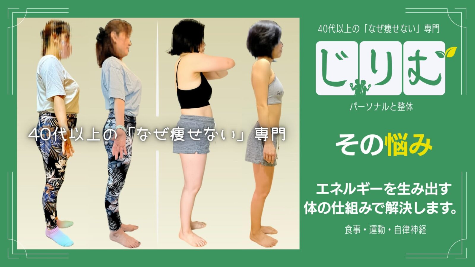 40代以上の「なぜ痩せない」専門|じりむ(パーソナルと整体)